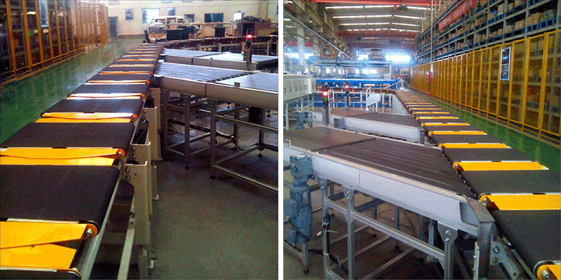交叉帶分揀機的分揀動作由“小車”完成,當“小車”移動到所規(guī)定的分揀位置時,轉(zhuǎn)動皮帶,完成把商品分揀送出的任務。因為直線電機主驅(qū)動與“小車”上的帶式輸送機呈交叉狀,故稱交叉帶分揀機。因為不受物品重量、尺寸以及摩擦系數(shù)的影響,提高了處理物品的范圍、擴大上包通道、加快卸包速度、縮短入格距離、靈活設計格口寬度、實現(xiàn)準確、平穩(wěn)作業(yè)處理等特點。