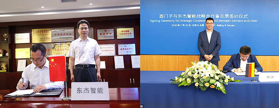 期間,東杰智能總經(jīng)理王永紅與西門子(中國)有限公司執(zhí)行副總裁王海濱借助云平臺實現(xiàn)云端簽約,雙方進行深入交流,對未來合作前景充滿信心。