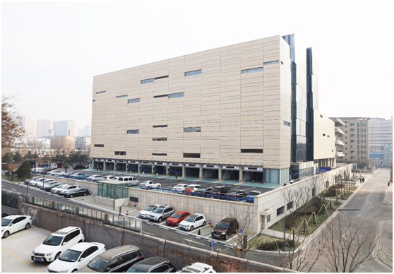 學(xué)府智能停車樓位于塢城路與學(xué)府街交叉口西北角,該項目建筑面積17908.41平方米,總高度為38.75米,分為南北兩個庫,南庫停車層13層,北庫停車層11層,共計1204個停車位,其中機械停車位918個,室外停車位118個,商務(wù)樓地下兩層停車位168個。樓體設(shè)置11個相互獨立的進口和出口,實現(xiàn)了獨立連續(xù)存取車輛。