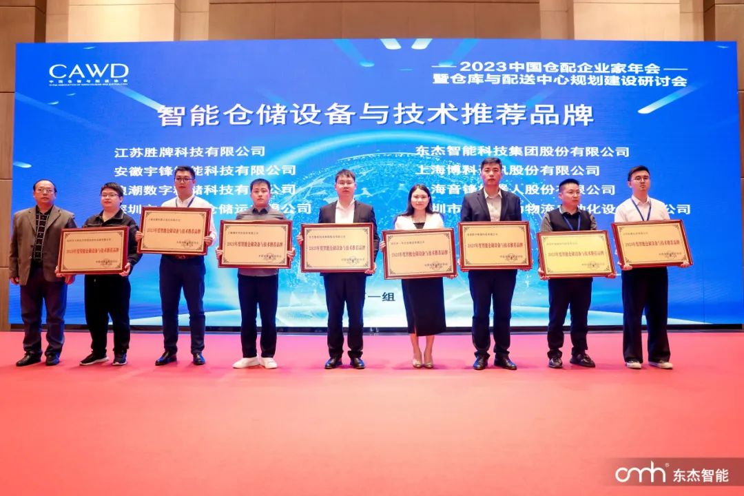 近日,2023 中國倉配企業(yè)家年會暨倉庫與配送中心規(guī)劃建設研討會在寧波順利召開,會上,東杰智能榮獲“2023年度智能倉儲設備與技術推薦品牌”榮譽。