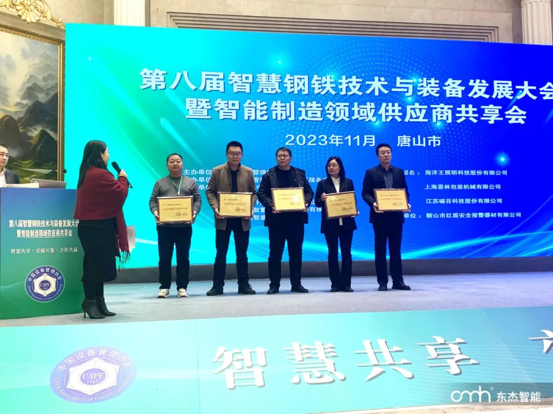近日,東杰智能受邀參加第八屆智慧鋼鐵技術與裝備發(fā)展大會暨智能制造領域供應商共享會,并在會上授予“2023年度鋼鐵行業(yè)優(yōu)質供應商”獎牌。