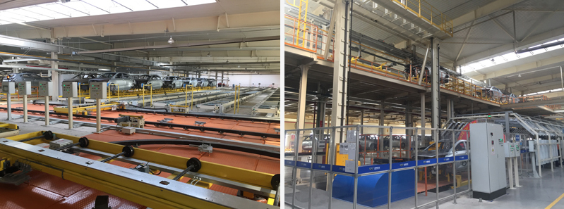 該工程包括:1、板式鏈,節(jié)拍為150秒/臺,地板鏈根據(jù)工藝要求,自動(dòng)完成工件的上件、工位間輸送和下件功能;2、自行小車,節(jié)拍為150秒/臺(可提升到120秒之內(nèi)),小車可設(shè)定全自動(dòng)、半自動(dòng)和手動(dòng)三種方式;3)WBS輸送線,150秒/臺,通過調(diào)速可以提到120秒,關(guān)鍵部位節(jié)拍:90秒/臺。根據(jù)工藝流程的需求,能自動(dòng)完成一系列物料的傳接動(dòng)作。