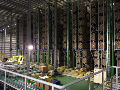 中國大冢立庫通過自動化設(shè)備實現(xiàn)了成品的自動包裝、組垛、出入庫、存儲和檢驗等功能。