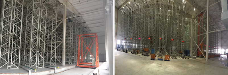 巖心高架庫(kù)長(zhǎng)約80米,跨度規(guī)劃約66米,貨架高度約為14米。該倉(cāng)庫(kù)由立體貨架系統(tǒng)、堆垛機(jī)系統(tǒng)、轉(zhuǎn)軌車(chē)系統(tǒng)、出入庫(kù)輸送系統(tǒng)及相應(yīng)的電氣控制系統(tǒng)、WCS及WMS系統(tǒng)組成。